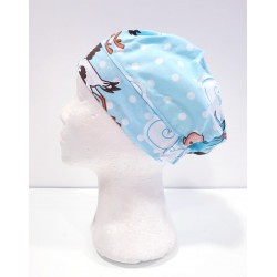 Touca com elástico. Tamanho único e ajustável a qualquer cabeça. Modelo unissexo.