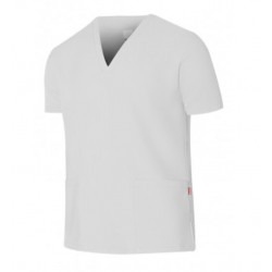 Camisola sanitária de corte clássico, tecido elástico, adequado para uso sanitário, medicina geral, laboratórios, farmácias, ortopedia e fisioterapia. Também adequado para uso em spas, casas de repouso.